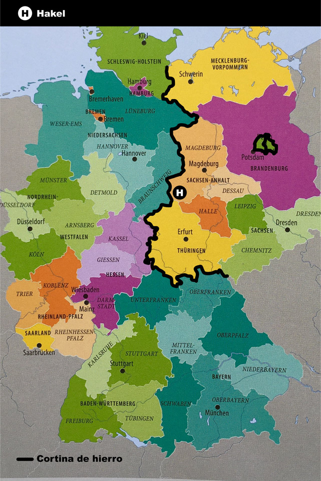 En 1964, cuando tenía 14 años, me regalaron el atlas geográfico de la enciclopedia alemana «Brockhaus». En el índice posterior vi que aparecía nuestro apellido «Hakel» y este figuraba en uno de los mapas de detalle de las regiones alemanas, con un color diferenciado de su entorno. Sin embargo no estaba claro de que elemento geográfico se trataba. Como el «Brockhaus Atlas» estaba editado en la entonces Alemania Federal, los límites políticos, entre esta y la Alemania Oriental (DDR) no estaban expresados; quizás alentando la idea, que Alemania era un solo país. Solo se distinguían claramente los límites entre cada uno de los «Lander» (provincias-estado) que constituían las partes de ambas Alemanias y había que saber por cual de los bordes de esas provincias-estado pasaba la separación entre la Alemania Federal y la Alemania Oriental (DDR), que a su vez, era el límite que marcaba la «Cortina de Hierro», que separaba a los dos bloques políticos de ese entonces.